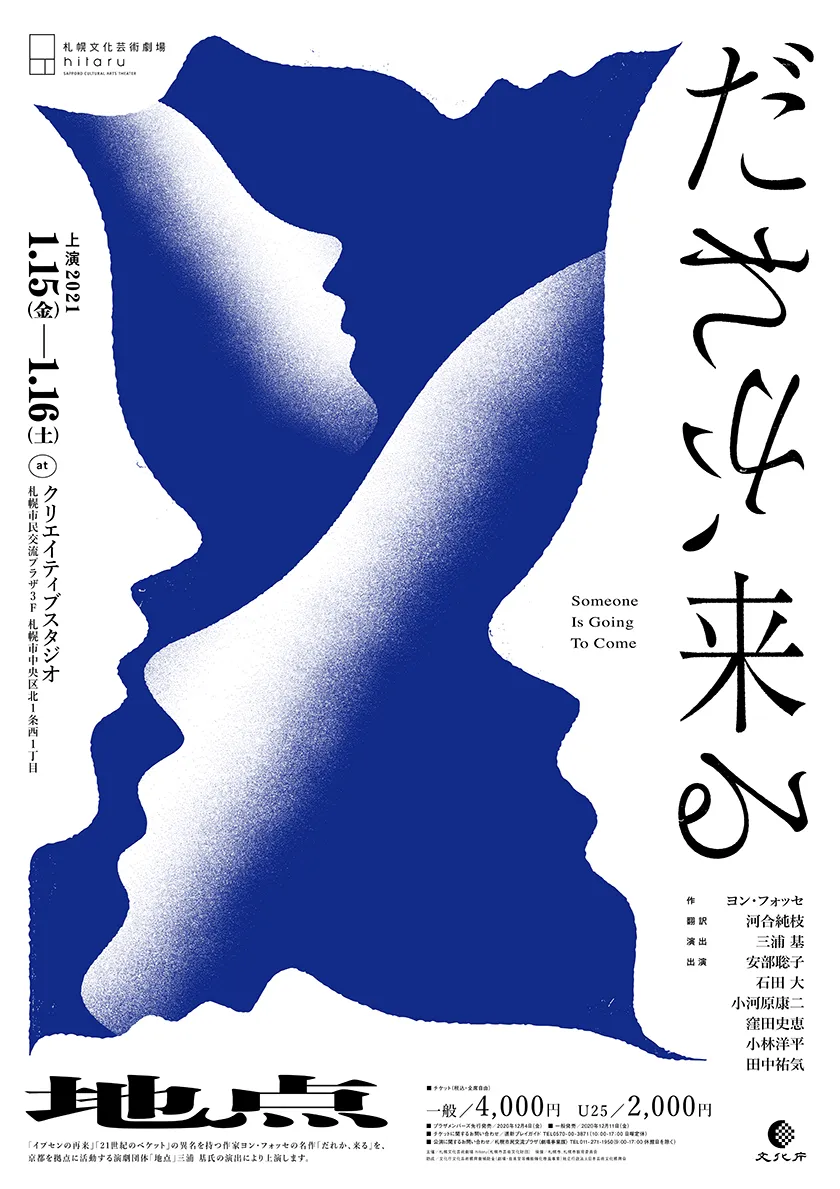 A poster for the performance of Jon Fosse's masterpiece "Someone is going to come" by Chiten, a theater group based in Kyoto, Japan.