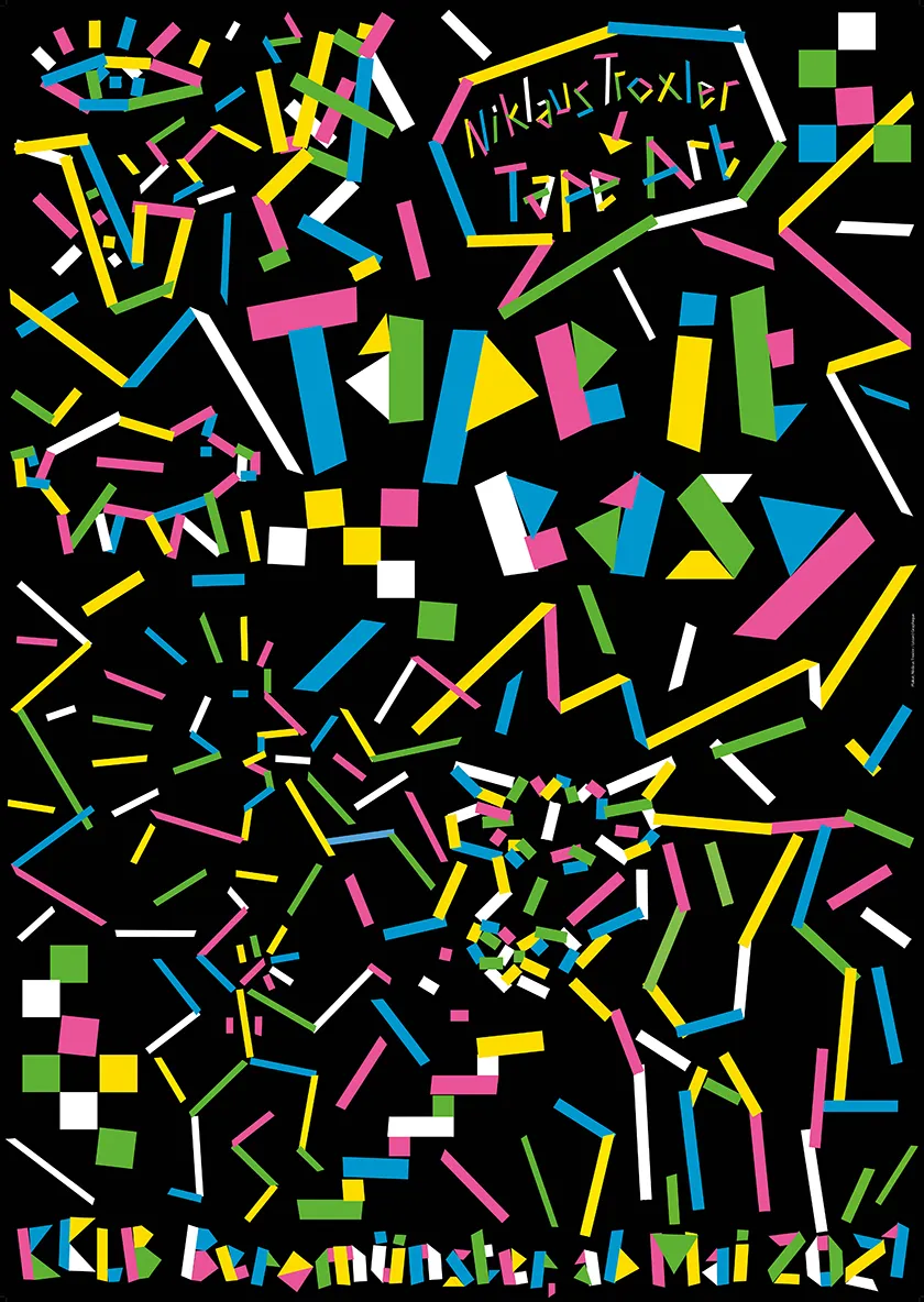 3_Niklaus Troxler Tape it easy Poster for my tape instellation at KKLB arts center in Beromünster. Original tape work, then printed in silkscreen.