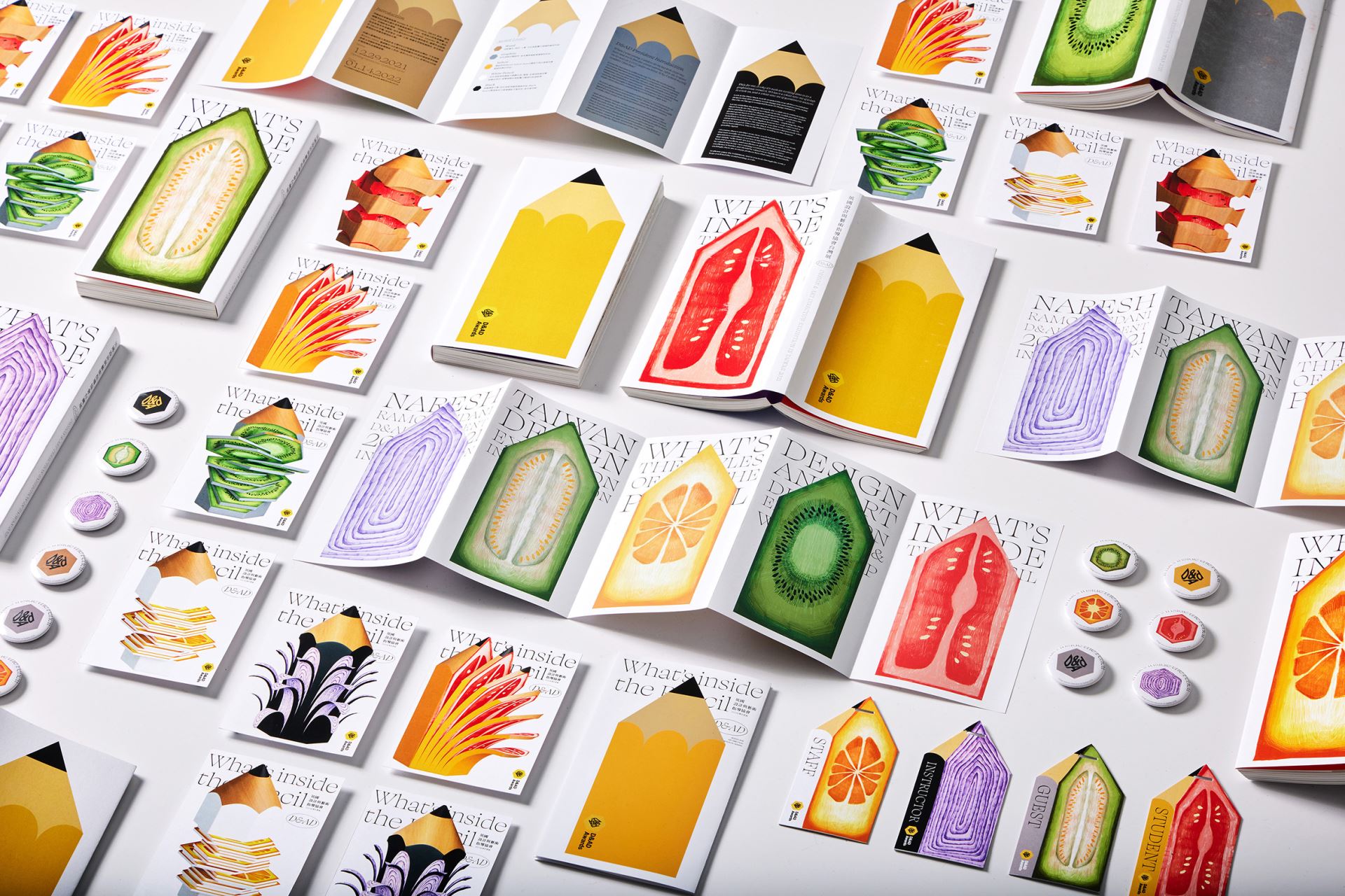 從2021年12月29日到2022年1月14日的兩個星期裡,設計愛好者將有機會在台灣科技展覽館看到總部位於英國的D&AD設計和藝術指導獎(Design & Art Direction Awards)的最佳作品,這在冠狀病毒大流行期間是一個難得的機會,因為大多數活動都已經轉移到線上。 這些鉛筆代表著D&AD獎項的實際獎杯,該獎項是世界上最頂尖的廣告設計比賽之一。儘管這些鉛筆只是象徵著獎項,從木頭鉛筆到黑色鉛筆獎,但它們的內部揭示了與台灣的聯繫:世界上很少有地方可以享受到美味的熱帶水果!