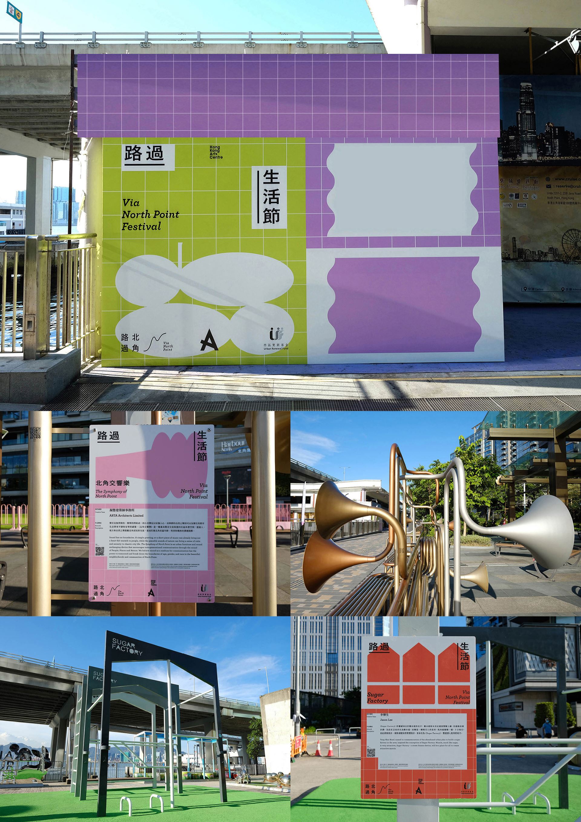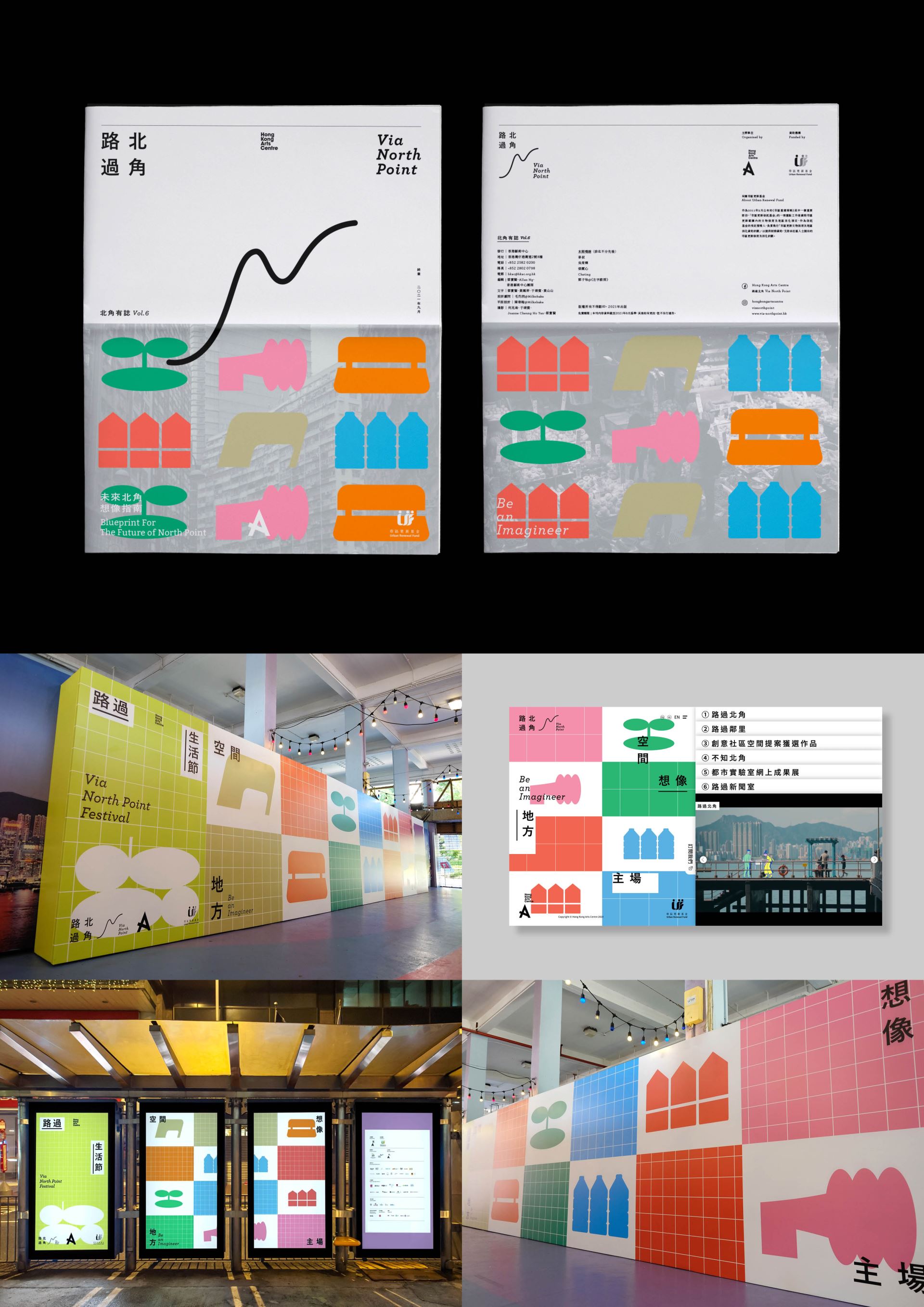 “Via NORTH POINT Festival” was presented in Aug 2021 by Via NORTH POINT, a public art initiative focusing “Be an Imagineer” as the spirit, merging creativity with daily life in “North Point”, a vibrant community of Hong Kong. The festival kicked off cultural activities with insights via a series of public artworks created by architects, artists and local community, celebrating the heritage and cultural diversity of the neighbourhood. The festival visual identity was simply inspired from the six major public artworks installed along the coastal area of North Point, presented into simple and bold geometric shapes with vibrant colours. The visual identity was widely applied from print to environmental graphics and online publicity, responded to the diversity of local neighbourhood. The vibrant and dynamic visual identity successfully attracted the attention of local as well as public audience, came to participate the different programs during the festival.