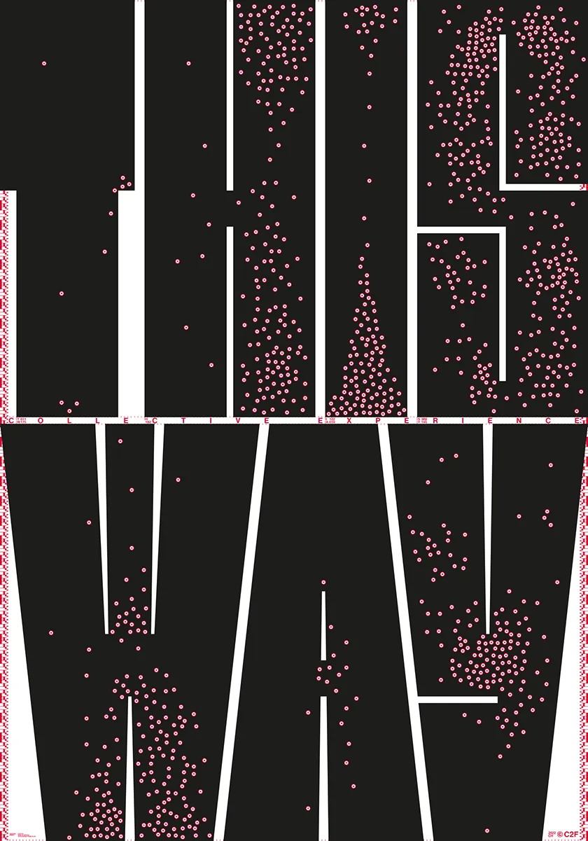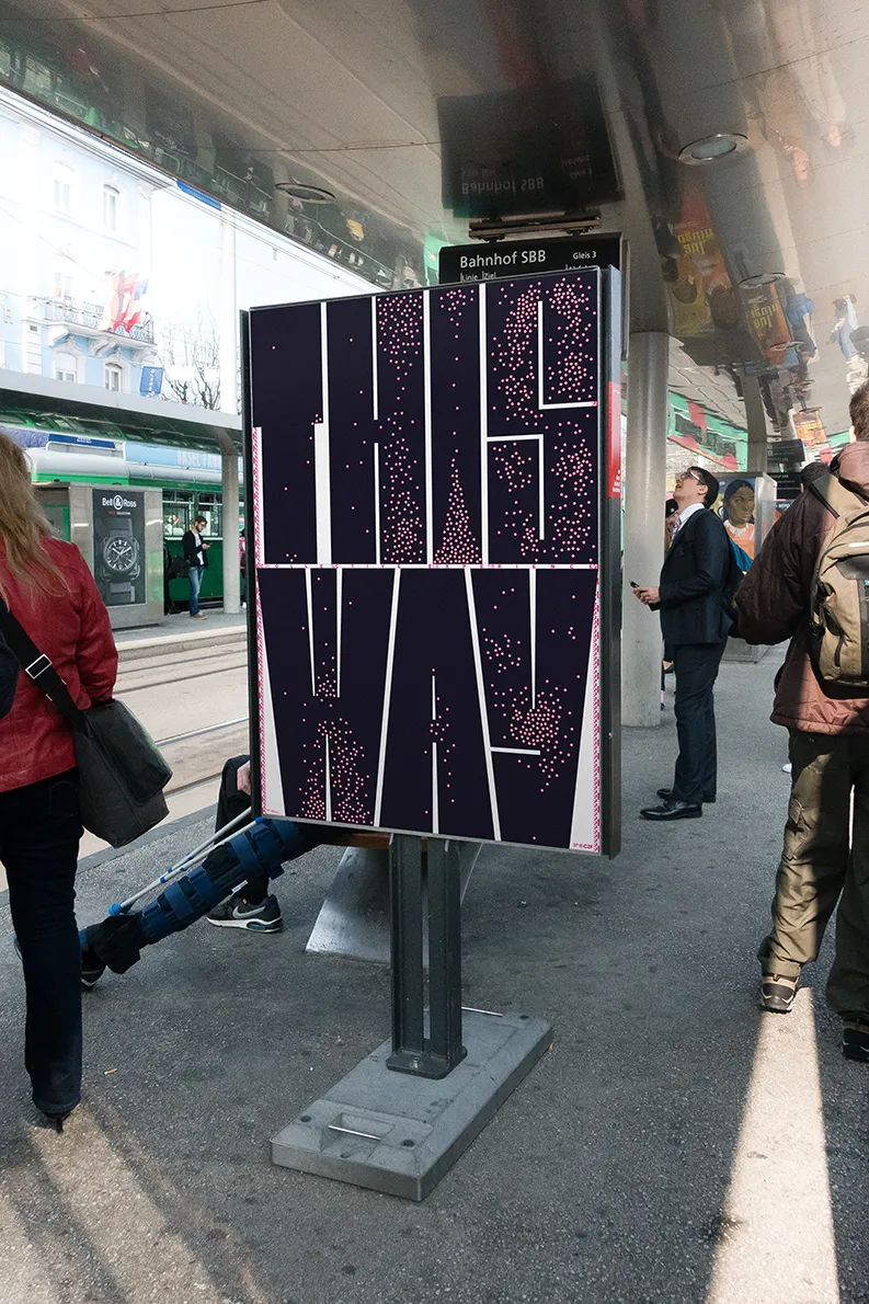 Do we follow the masses? Do we find individual paths? Does the collective make us smart? How solidary is individualism? «This Way» deals with the behaviour of individuals in groups, with swarm behaviour and swarm intelligence. We were invited to create a poster on the theme of «collective experience», a poster exhibition held in Geneva in autumn 22.