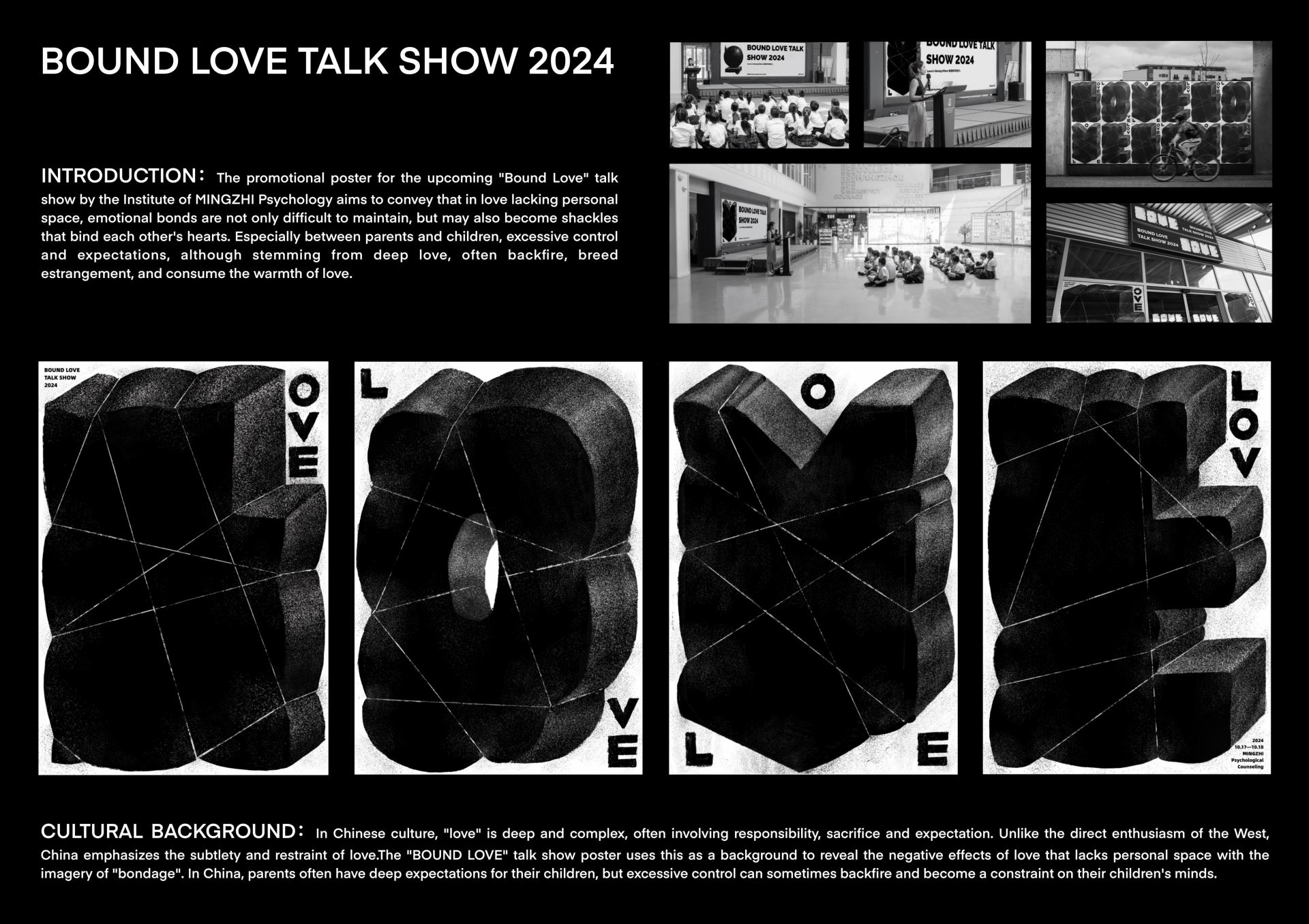 明智心理研究所即將開展的“束縛的愛”脫口秀的宣傳海報,意在傳達:在缺乏個人空間的愛中,情感的紐帶不僅難以維繫,反而可能成爲彼此心靈束縛的枷鎖。尤其在父母與子女之間,過度的控制與期望,雖源於深沉的愛意,卻往往適得其反,滋生隔閡,消耗愛的溫度。
