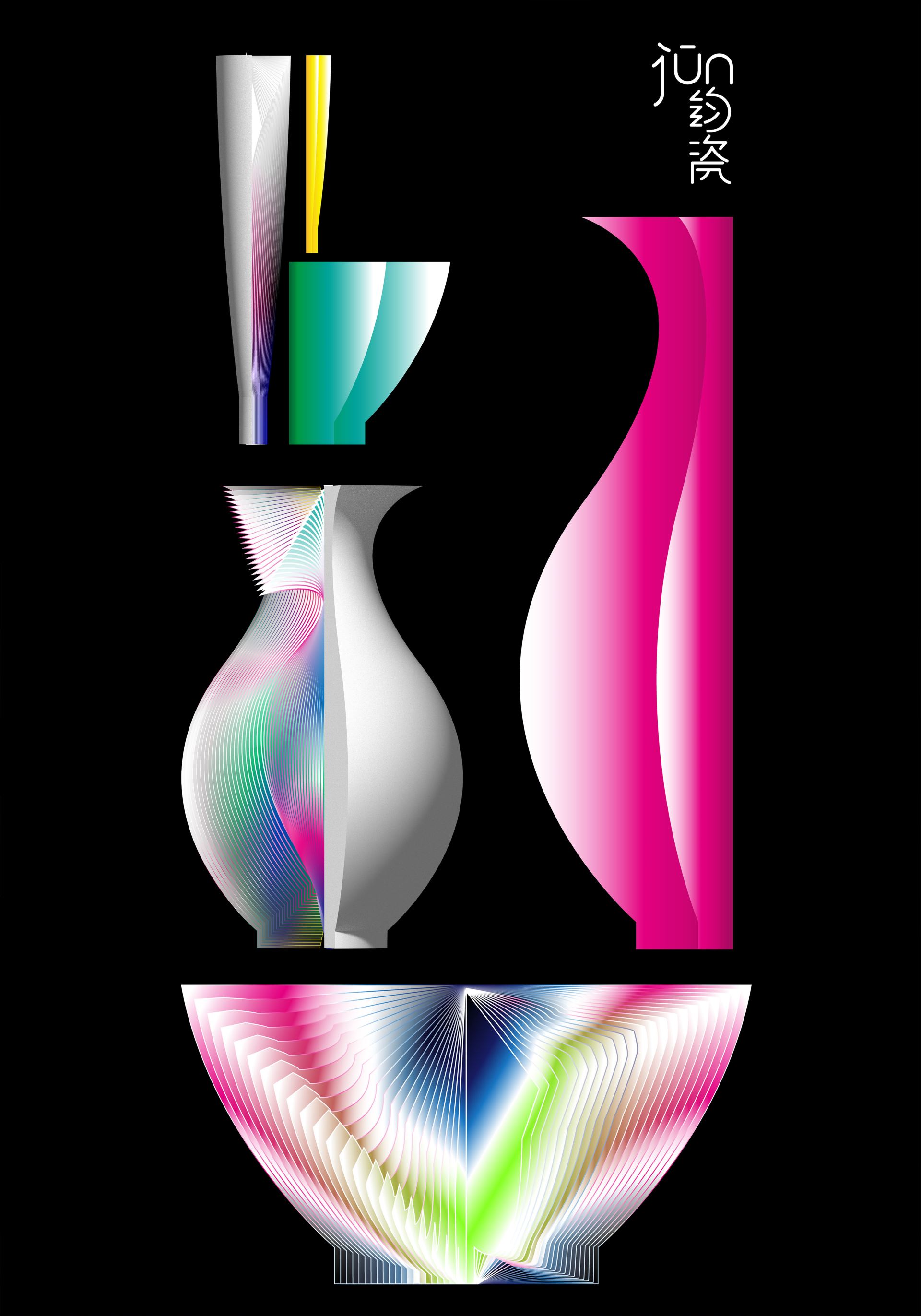 瓷始於唐、盛於宋,是中國古代五大名瓷之一,並以其獨特的釉料及燒成方法產生的窯變神奇而聞名於世。鈞瓷之所以名貴,除了造型渾厚端莊外,還有色彩明艷。作品以「鈞瓷」為元素,選取古代宮廷鈞瓷中的經典器型進行設計,在保留瓷器雅緻外形特徵的同時,增加設計形式語言。賦予現代色彩與形式美學感,使其更具視覺衝擊力。透過設計手法在一定程度上傳播中國的「鈞瓷」文化。