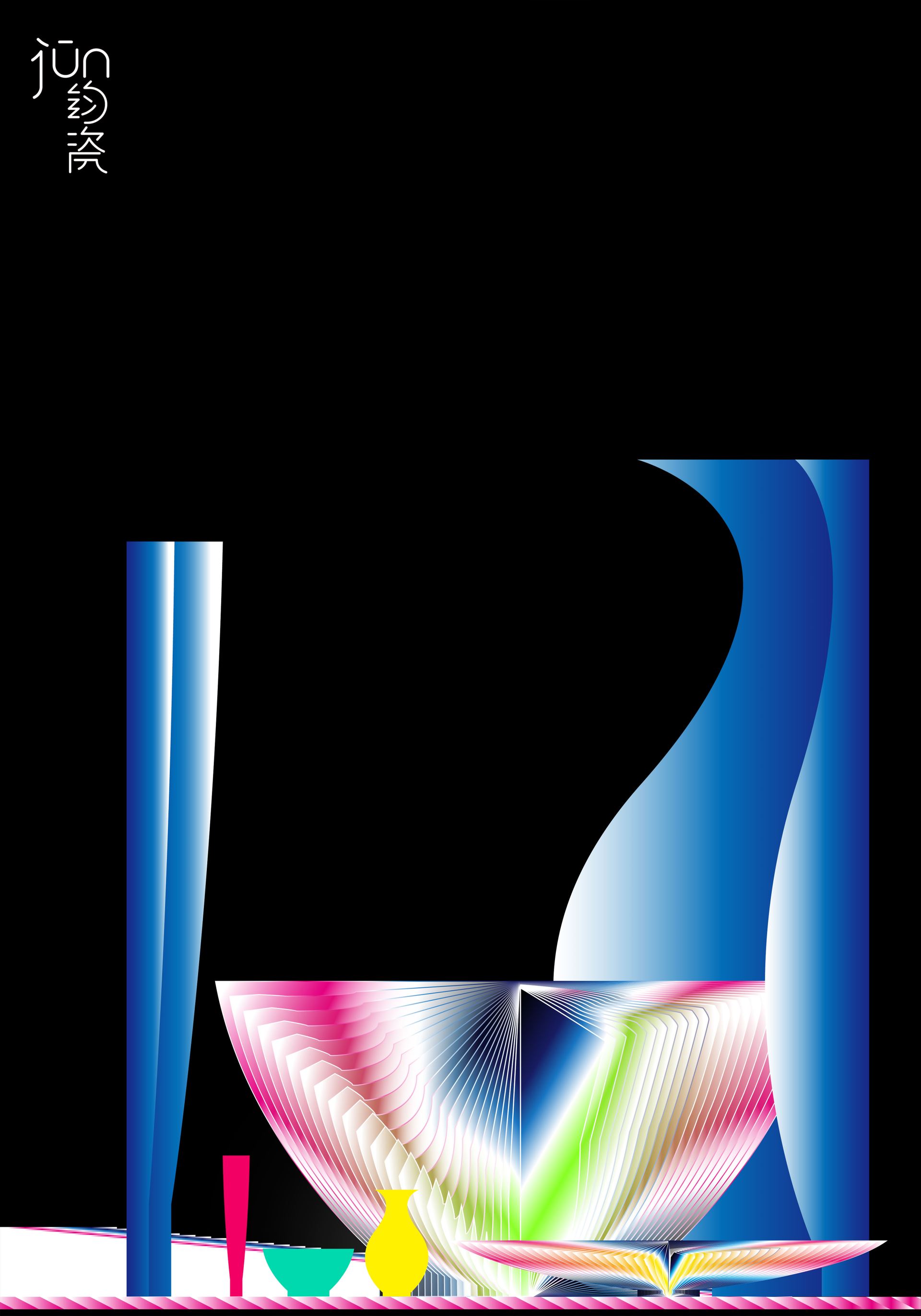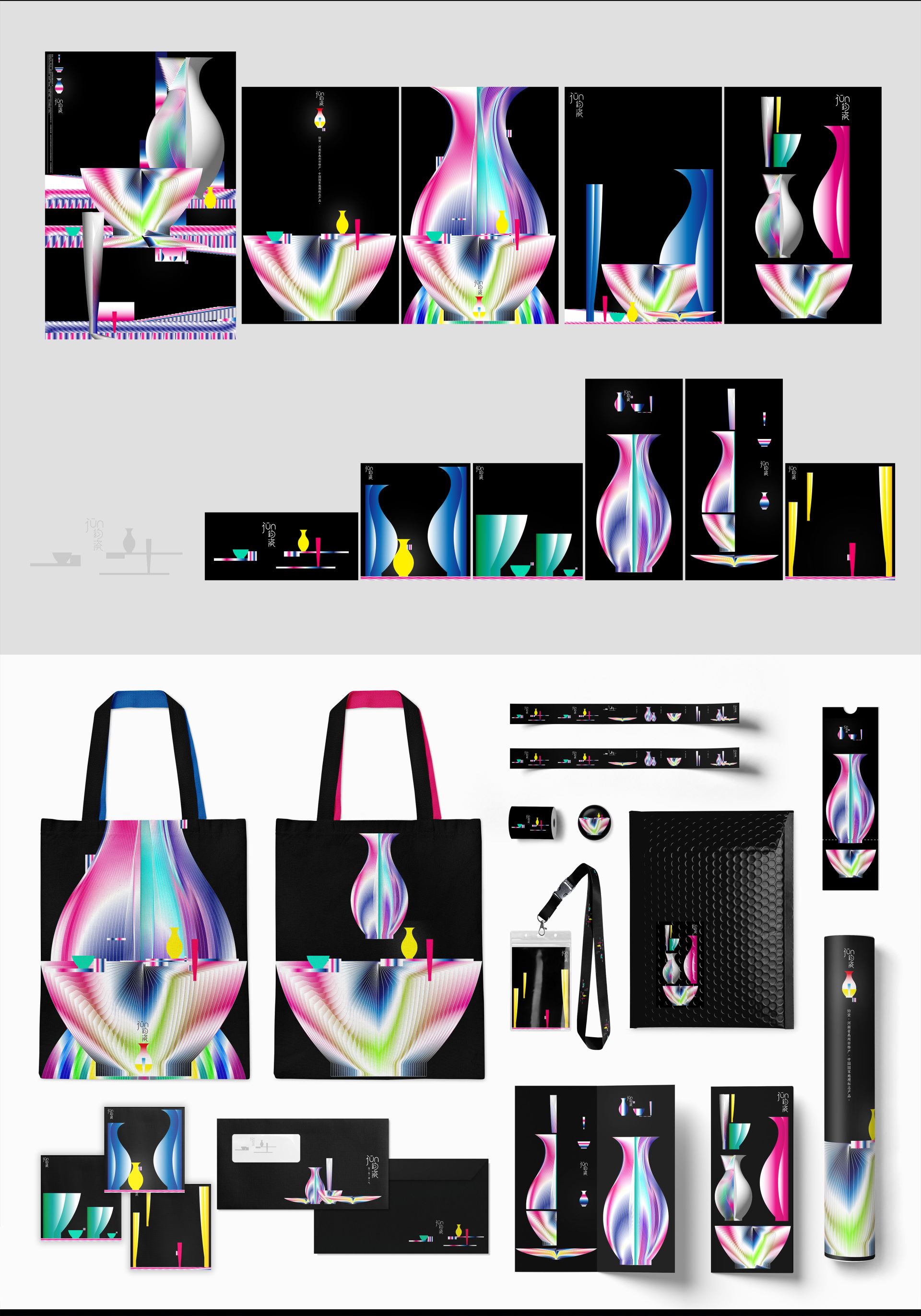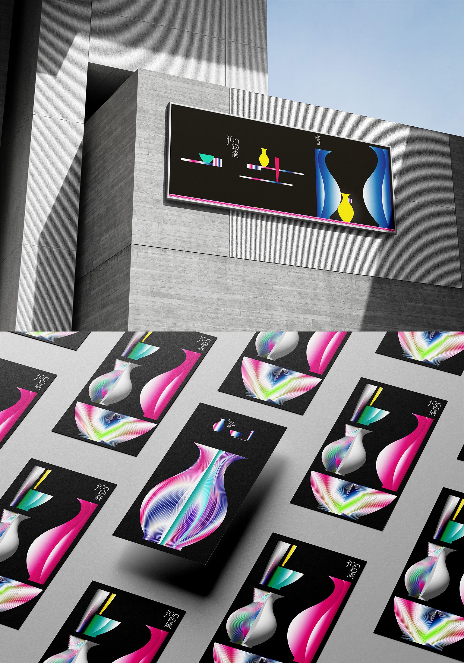 The Anecdotes of Jun Porcelain "is a visual image design created for the Yuzhou Jun Porcelain Museum, inspired by the unique" kiln transformation "aesthetics of Jun porcelain. The work deconstructs the classic color spectrum of Jun porcelain glaze, which features a gradual transition from rosy purple to sky blue. Through fluid geometry, the outline of the porcelain is reconstructed, and the rhythm of glaze color flow is transformed into a dynamic visual language. The design not only retains the essence of Jun porcelain's craftsmanship of "one color in the kiln, ten thousand colors out of the kiln", but also gives traditional new expression through modern composition techniques. The overall design is like an epic of Jun porcelain told through color, bringing vitality to the millennium kiln fire in contemporary design.