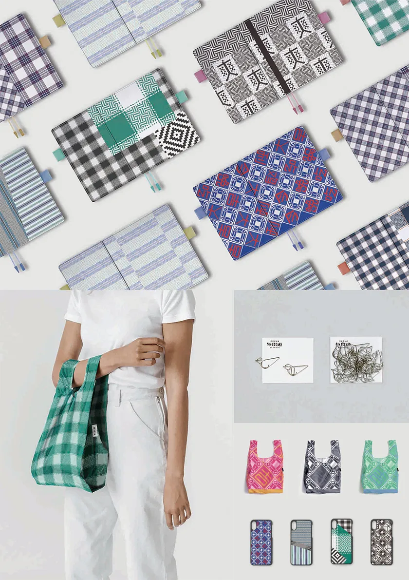 据记载东阳土布始于明朝,至今已有六百年历史,发展至今只剩下唯一一个女红仍在坚持织布,项目以非遗传承为初始目的,以求保留老手艺,抓住青年人的胃口。设计再造通过对纹样进行了详尽的分析与研究,还原结构,做出纹样的模纹图,将肌理放大,意欲使每个人在看到土布产品的第一眼,就知道原本密麻复杂的纹样究竟是怎样的结构、编织。同时,将原本灰暗传统的色调进行调整,变的“文艺”、“潮流”。为链接传统与新潮,将纹样、模纹图进行拼接运用,加强节奏;更代入流行的网络用语,吸引年轻人的眼球。